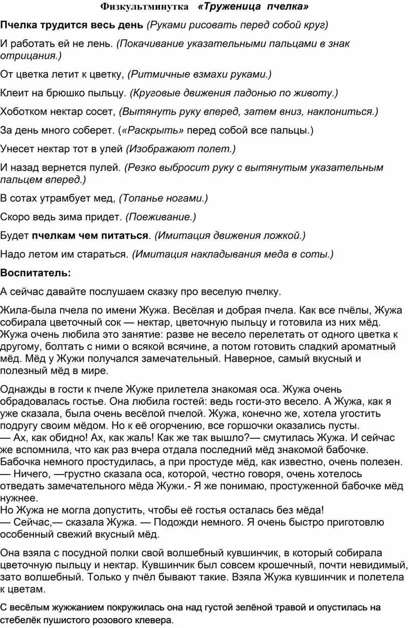 Физкультминутка «Труженица пчелка»