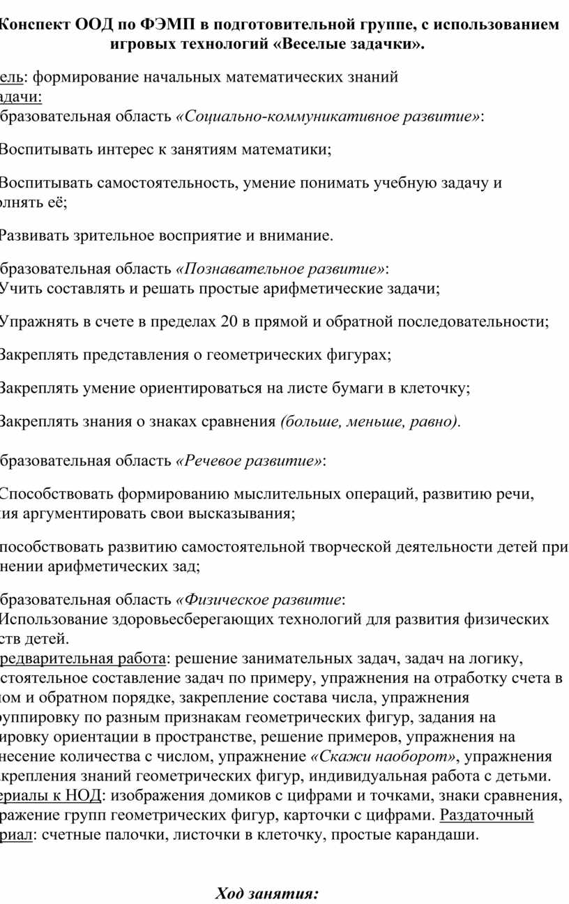 1.1 Конспект ООД по ФЭМП в подготовительной группе, с использованием игровых технологий