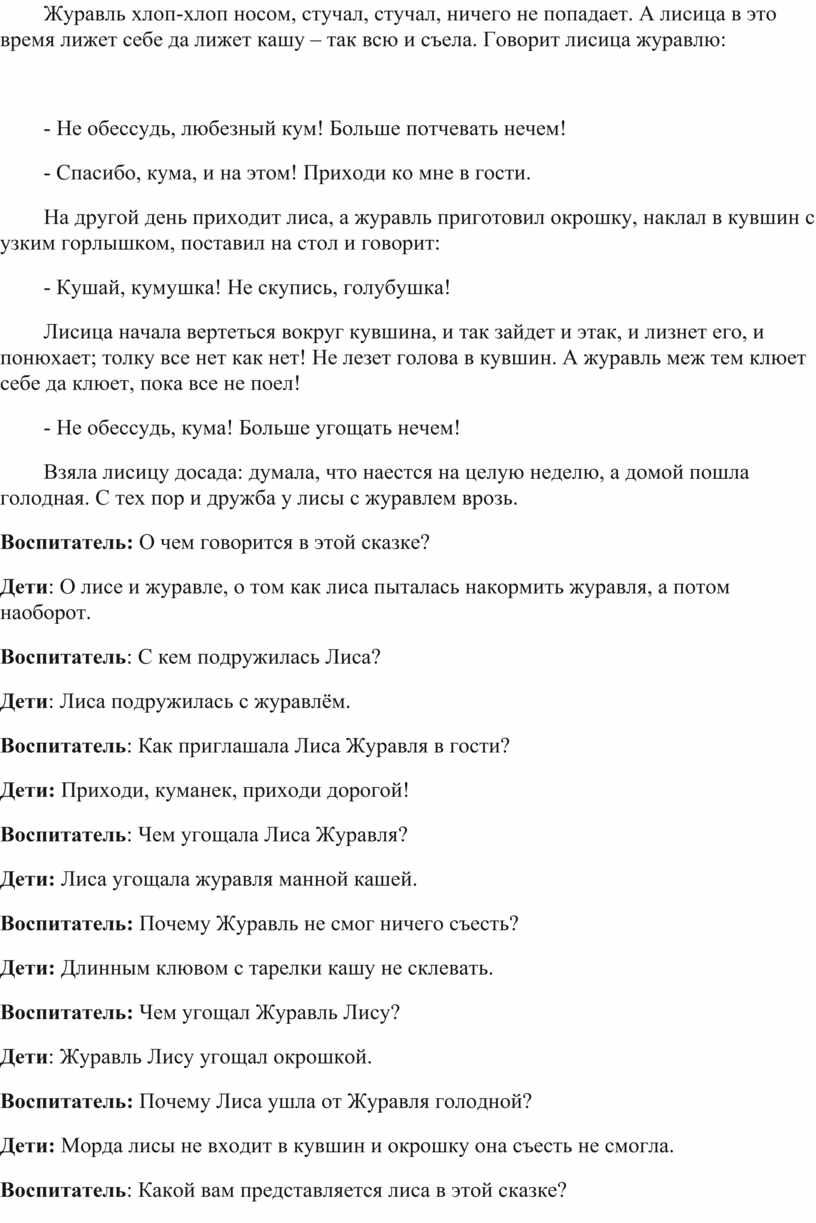 Воспитатель: Почему Лиса ушла от Журавля голодной?