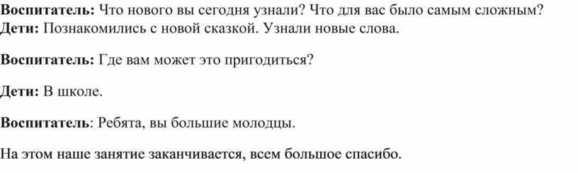 Воспитатель: Что нового вы сегодня узнали? Что для вас было самым сложным?
