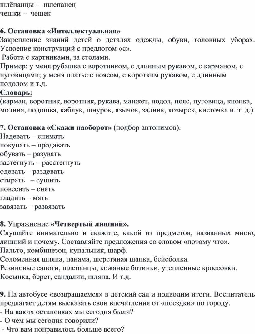 9. На автобусе «возвращаемся» в детский сад и подводим итоги. Воспитатель предлагает детям высказать свои впечатления от «поездки» по городу.
