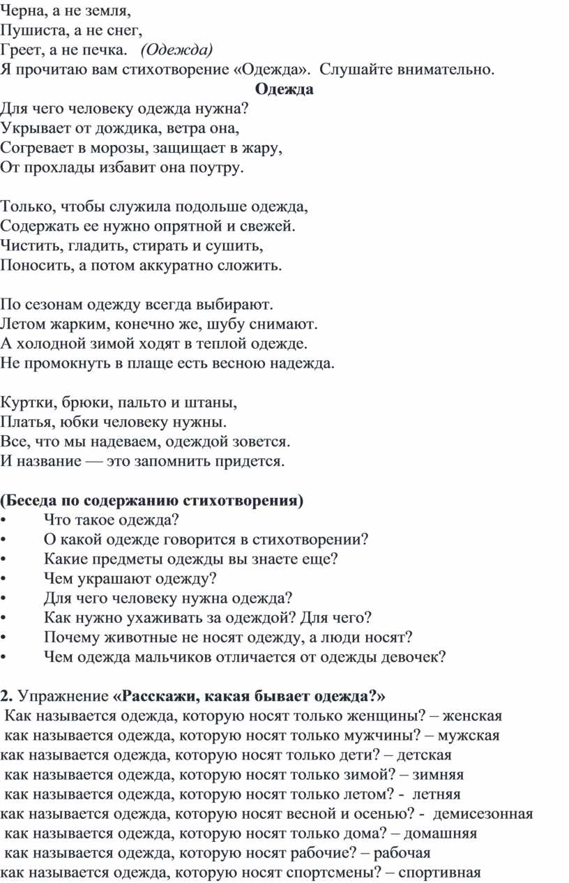Я прочитаю вам стихотворение «Одежда». Слушайте внимательно.