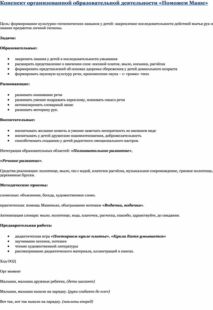 Конспект организованной образовательной деятельности «Поможем Маше»