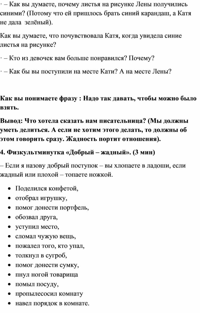 · – Почему Катя не дала карандаш сразу? (Она жадничала, не хотела делиться).