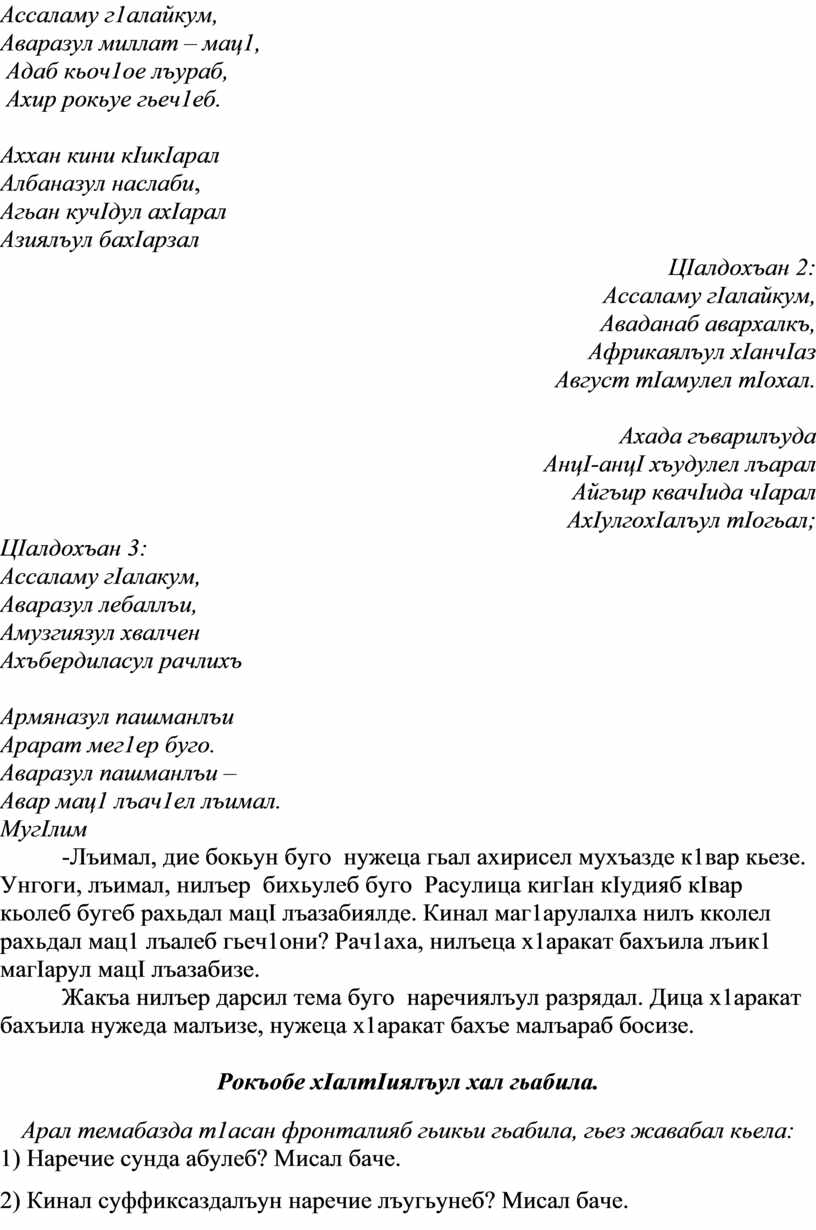 (ва чIегIерхъварал наречиязе суалал лъола, разрядал рицуна).