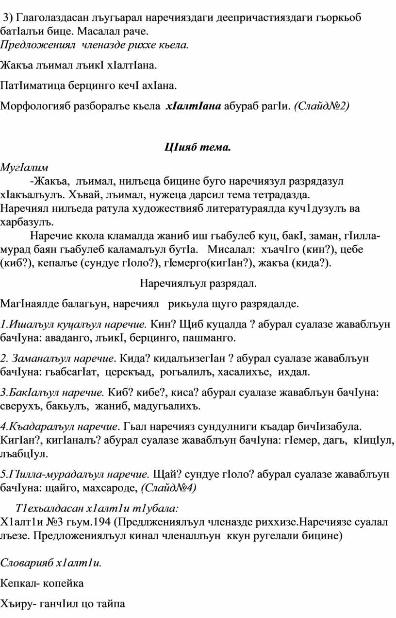 Х1алт1и №3 гьум.194 (Предлжениялъул членазде риххизе.Наречиязе суалал лъезе. Предложениялъул кинал членаллъун ккун ругелали бицине)