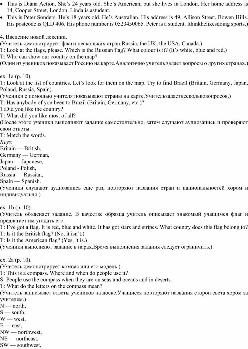 (Затем учитель проверяет выполнение индивидуального устного задания — учебникex. 7, p. 9)
