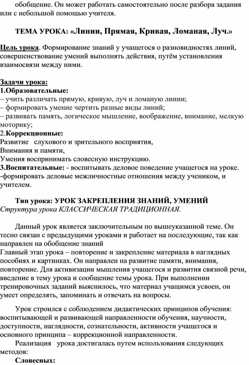 Цель: Формирование знаний у учащегося о разновидностях линий, совершенствование умений выполнять действия, путём установления взаимосвязи между ними.