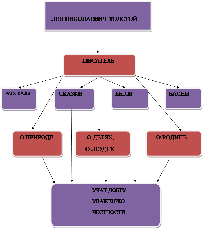 Цель: воспитывать любовь и интерес к русской литературе, родному языку, к Отечеству, природе на примере произведений Л. Н. Толстого.
