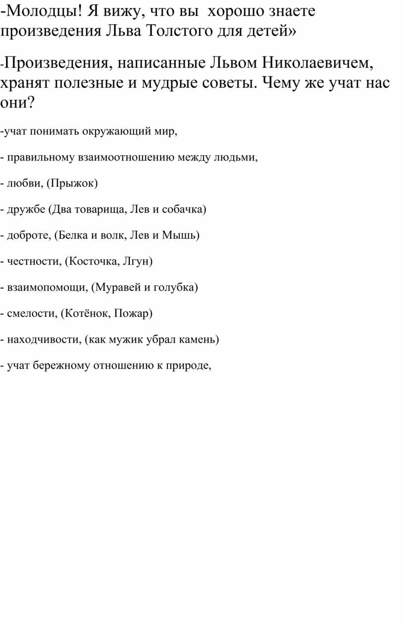 -Молодцы! Я вижу, что вы хорошо знаете произведения Льва Толстого для детей»