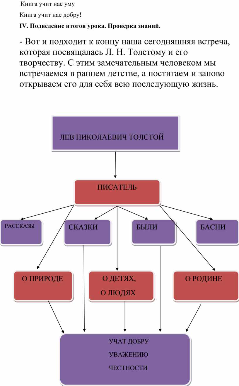 -А сейчас мы все вместе повторим наказы, которые Лев Толстой даёт нам, читателям в своих произведениях. Я вам буду говорить начало строки, а вы заканчивайте: