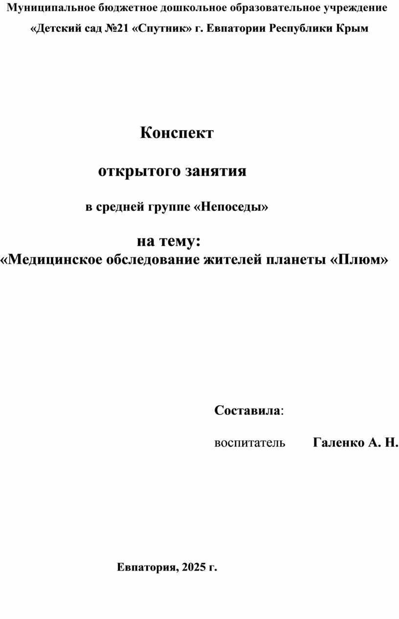 «Детский сад №21 «Спутник» г. Евпатории Республики Крым