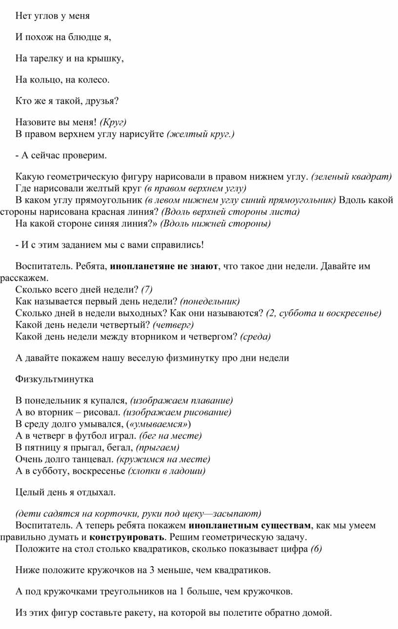 Воспитатель. Ребята, инопланетяне не знают, что такое дни недели. Давайте им расскажем.