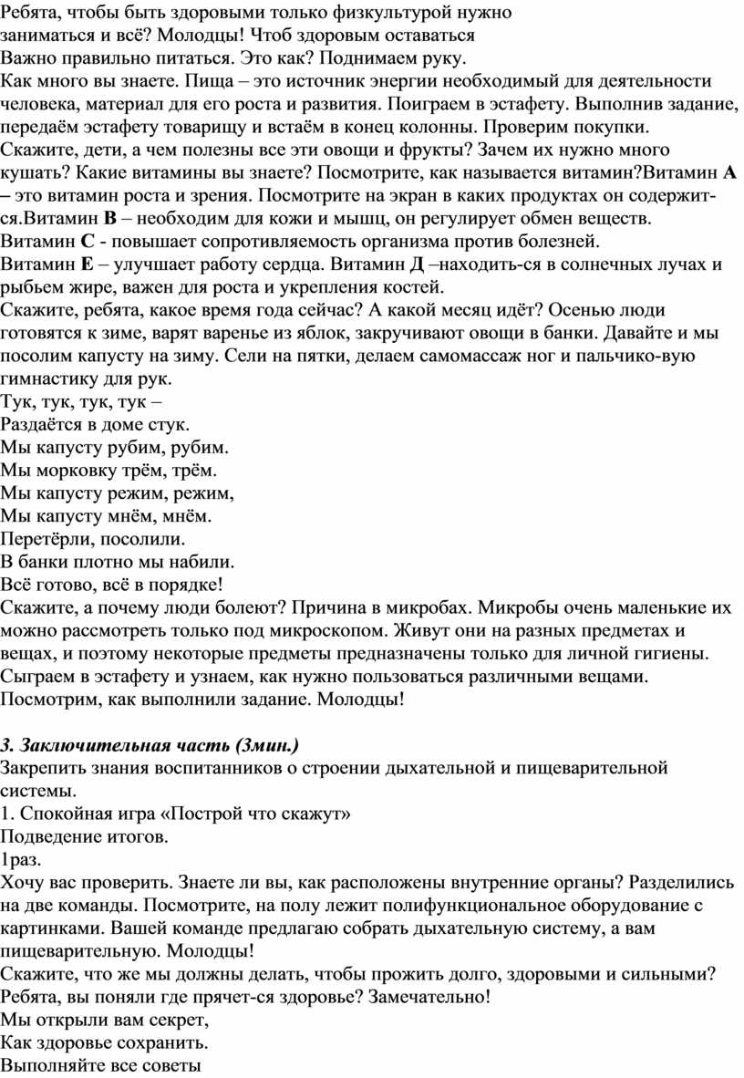 Закрепить знания воспитанников о строении дыхательной и пищеварительной системы.