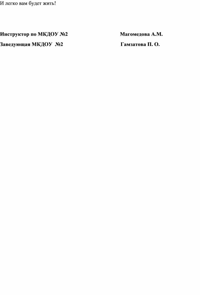 Заведующая МКДОУ №2 Гамзатова П. О.