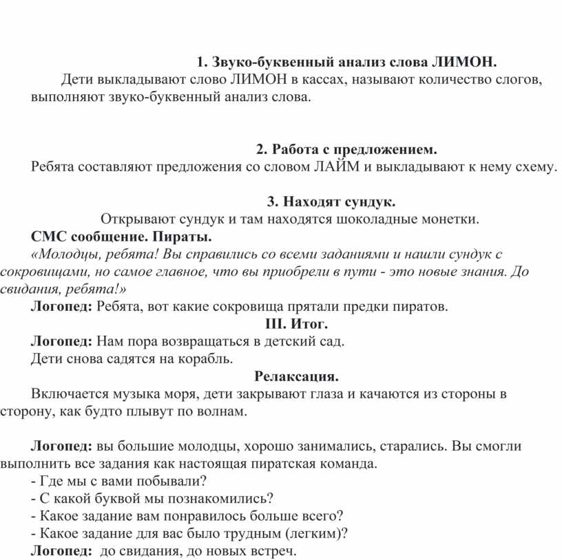 Логопед: вы большие молодцы, хорошо занимались, старались. Вы смогли выполнить все задания как настоящая пиратская команда.