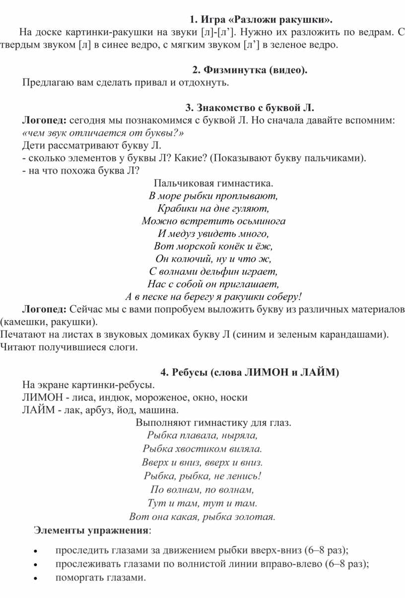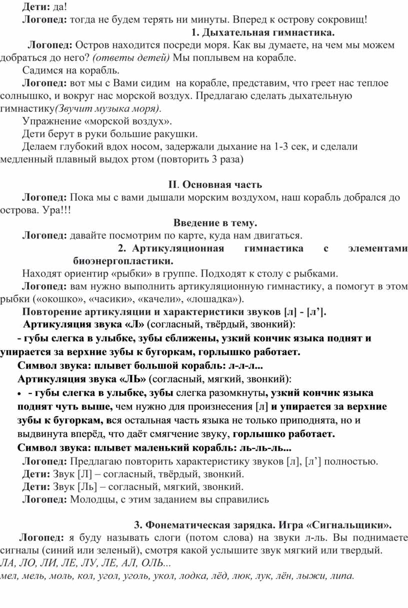 Оборудование: ноутбук, презентация, видео, мольберт, сундук, ориентиры с картинками, карта, «рыбки», кассы букв, большая касса, синие и зеленые карандаши, схемы слов, цветные камешки, ракушки большие и маленькие, «рыбки» на палочках для гимнастики, картинки с звуковыми домиками, зеркала, картинки на звуки [л]-[л’], сигнальные карточки синие и зеленые.