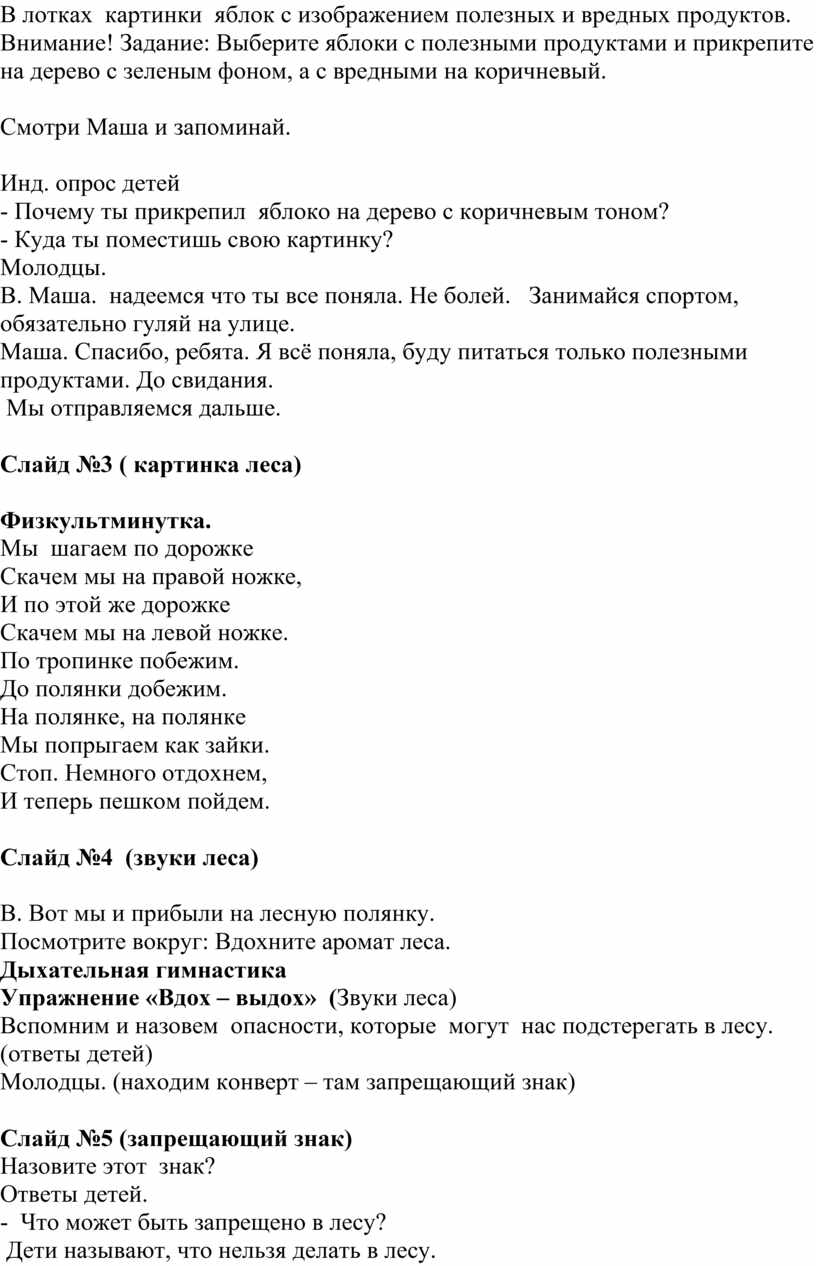 В: Маша, эти продукты пользы для здоровья не приносят. Ребята, назовите полезные продукты.