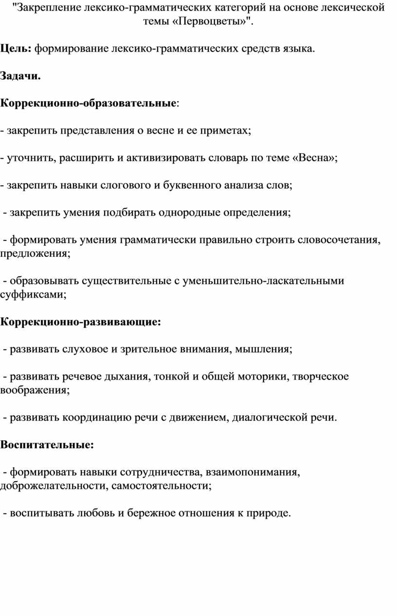 "Закрепление лексико-грамматических категорий на основе лексической темы «Первоцветы»".