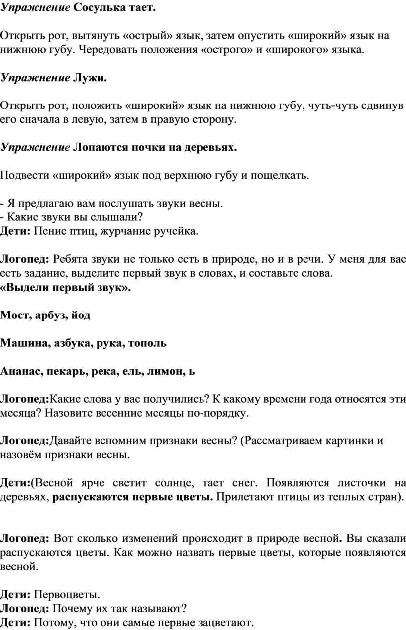 Логопед:Какие слова у вас получились? В какое время года бывают эти явления природы? (весной).