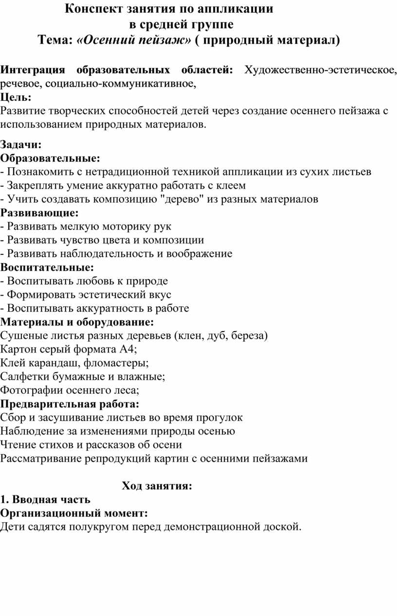 Развитие творческих способностей детей через создание осеннего пейзажа с использованием природных материалов.