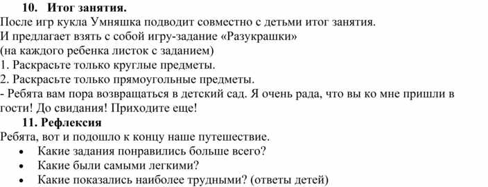 После игр кукла Умняшка подводит совместно с детьми итог занятия.
