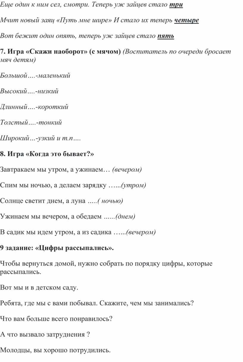 7. Игра «Скажи наоборот» (с мячом) (Воспитатель по очереди бросает мяч детям)