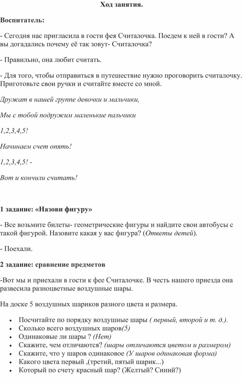 Конспект по ФЭМП в средней группе «В гости к фее Считалочке»