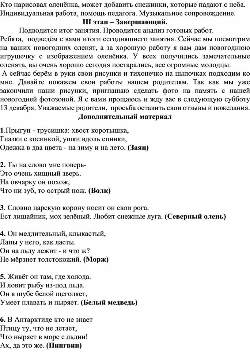 2.1.1. Рассказ об оленях, загадки с демонстрационным материалом. Ответы детей.
