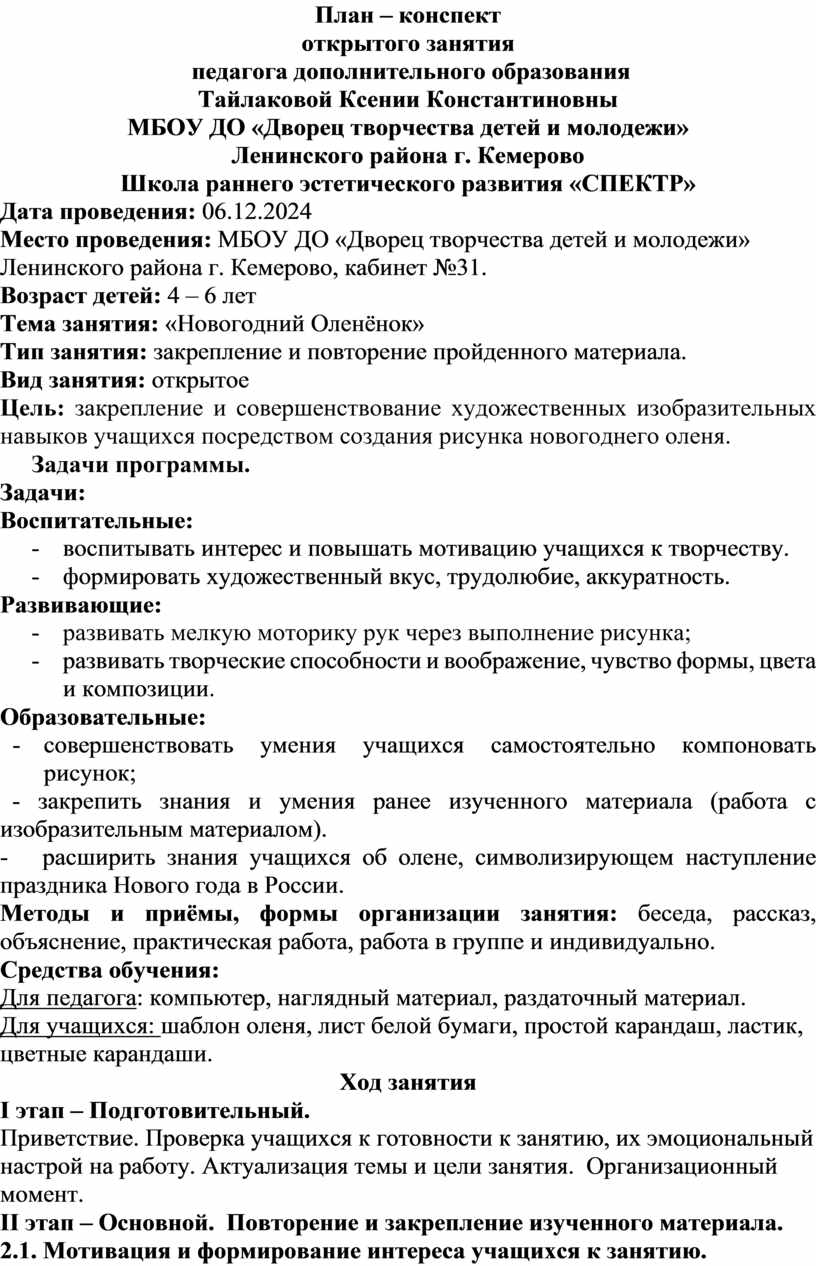 План - конспект занятия