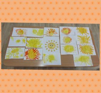 Все готовые работы воспитатель раскладывает на столе, вместе с детьми рассмотреть, порадоваться красивым ярким рисункам. Выделить интересные решения. Вывесить рисунки в группе: пусть в ней будет много солнечного света и тепла.