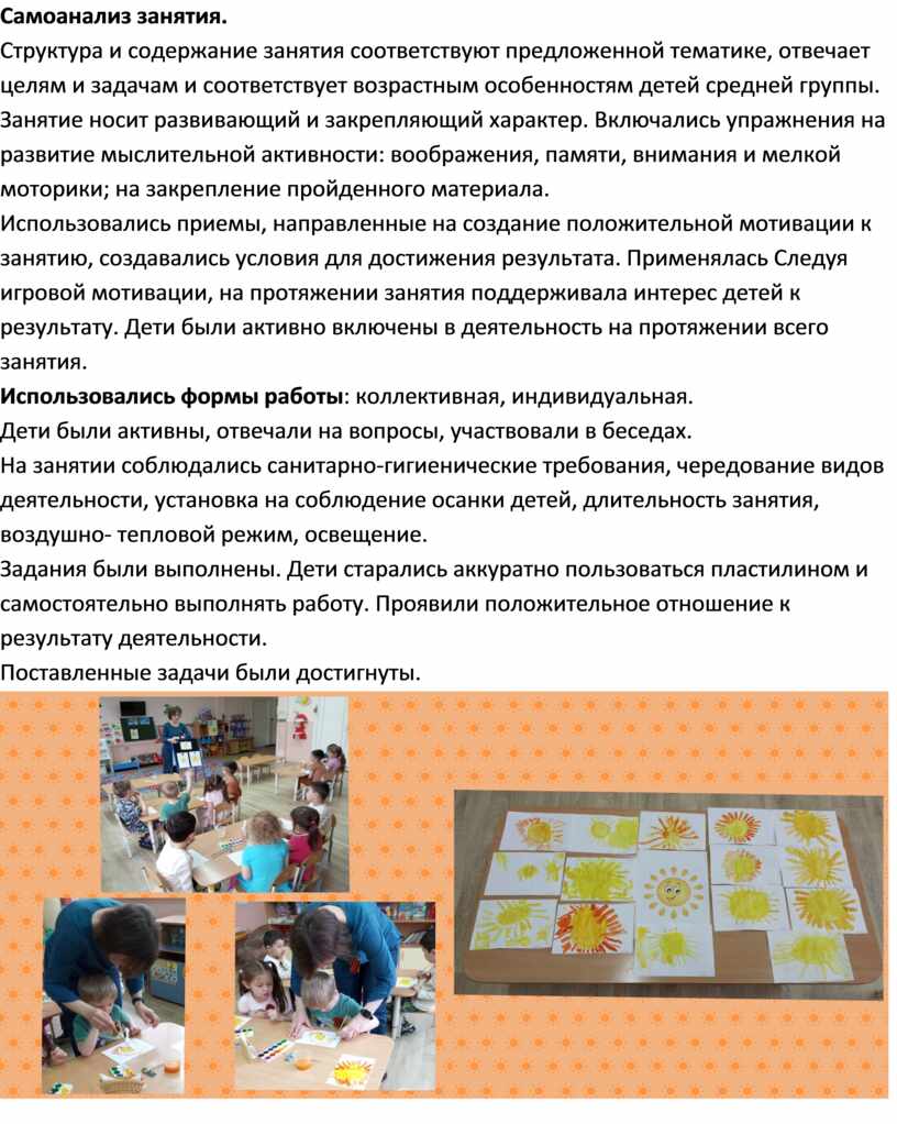 Использовались приемы, направленные на создание положительной мотивации к занятию, создавались условия для достижения результата. Применялась Следуя игровой мотивации, на протяжении занятия поддерживала интерес детей к результату. Дети были активно включены в деятельность на протяжении всего занятия.