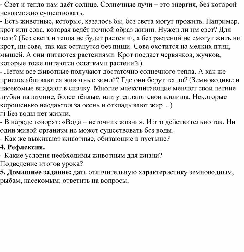 5. Домашнее задание: дать отличительную характеристику земноводным, рыбам, насекомым; ответить на вопросы.