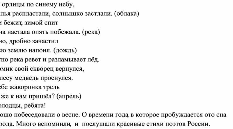 Хорошо побеседовали о весне. О времени года, в которое пробуждается ото сна природа. Много вспомнили, и послушали красивые стихи поэтов России.