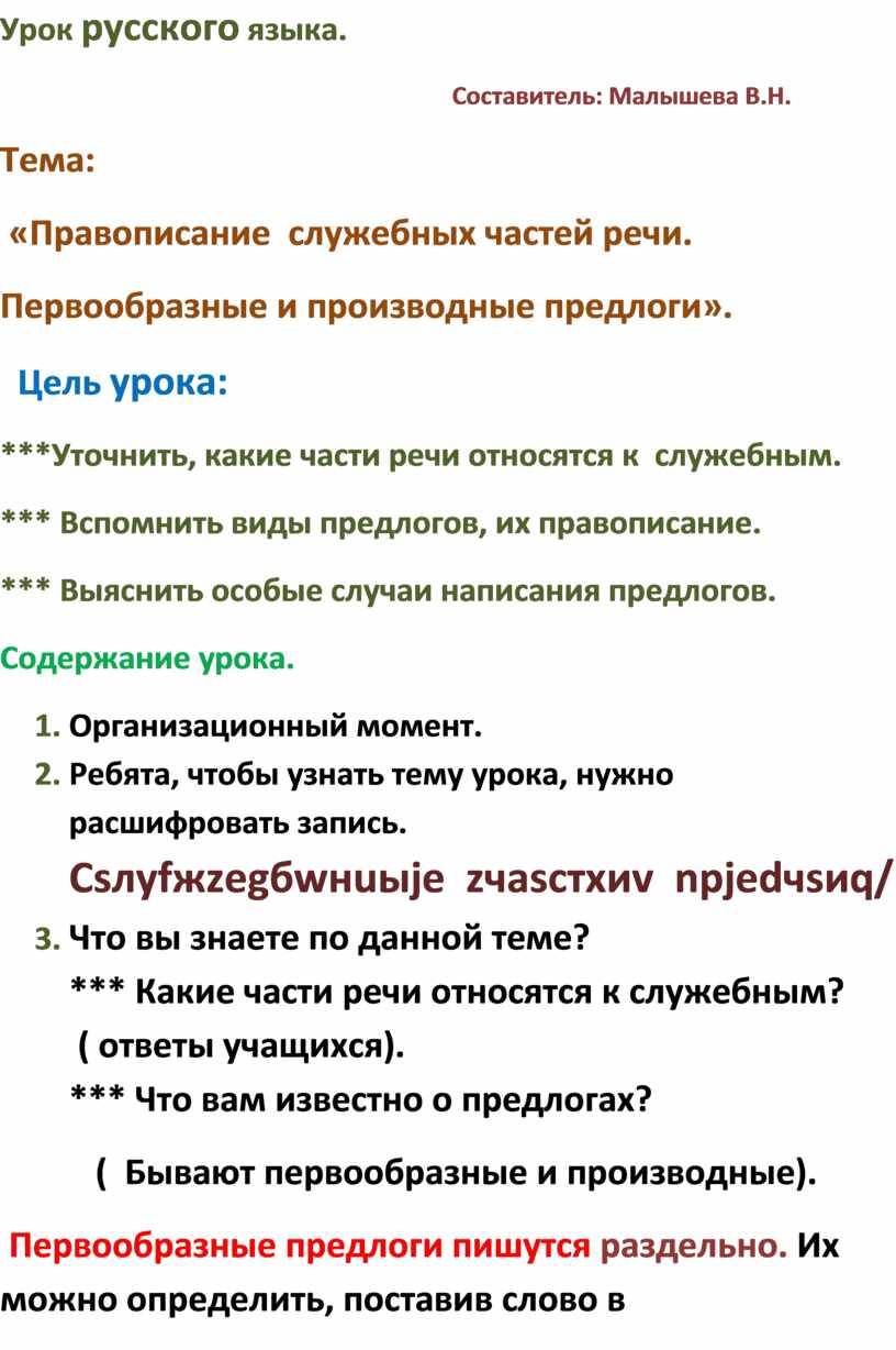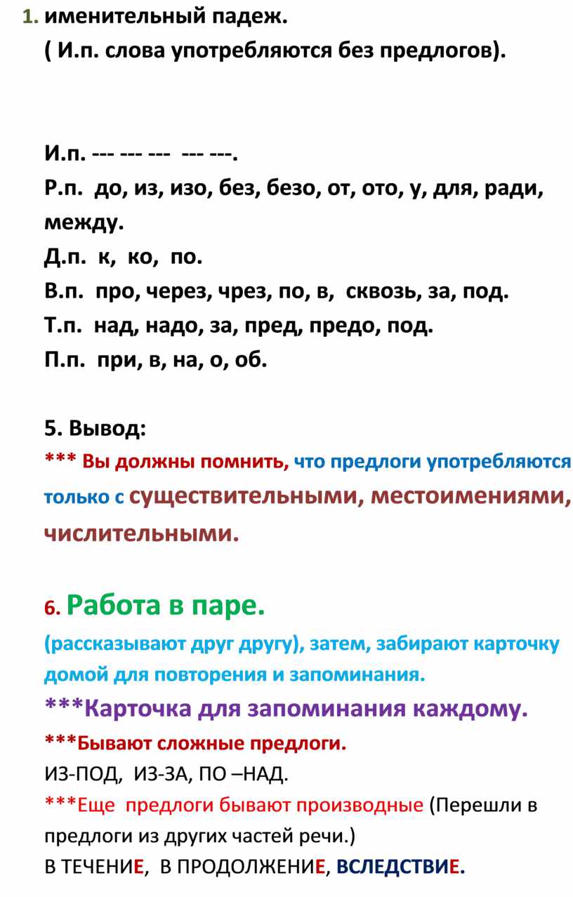4. Первообразные предлоги пишутся раздельно. Их можно определить, поставив слово в именительный падеж. ( И.п. слова употребляются без предлогов).