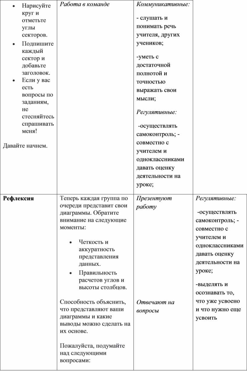 Конспект урока по математике «Построение столбчатых и круговых диаграмм»,