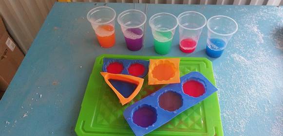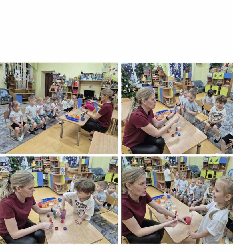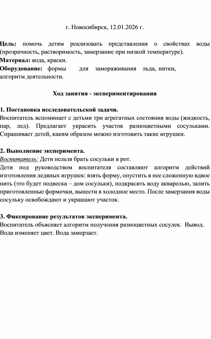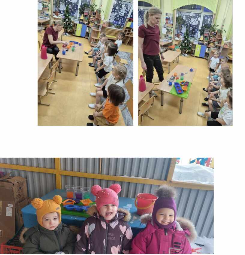 Цель: помочь детям реализовать представления о свойствах воды (прозрачность, растворимость, замерзание при низкой температуре).