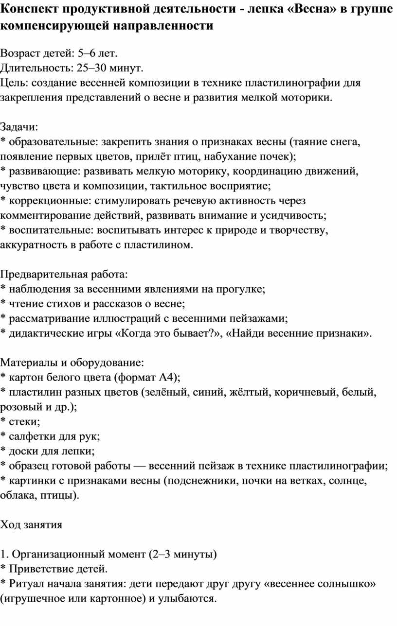 Цель: создание весенней композиции в технике пластилинографии для закрепления