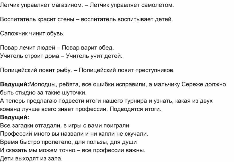 Ведущий:Молодцы, ребята, все ошибки исправили, а мальчику Сереже должно быть стыдно за такие шуточки.