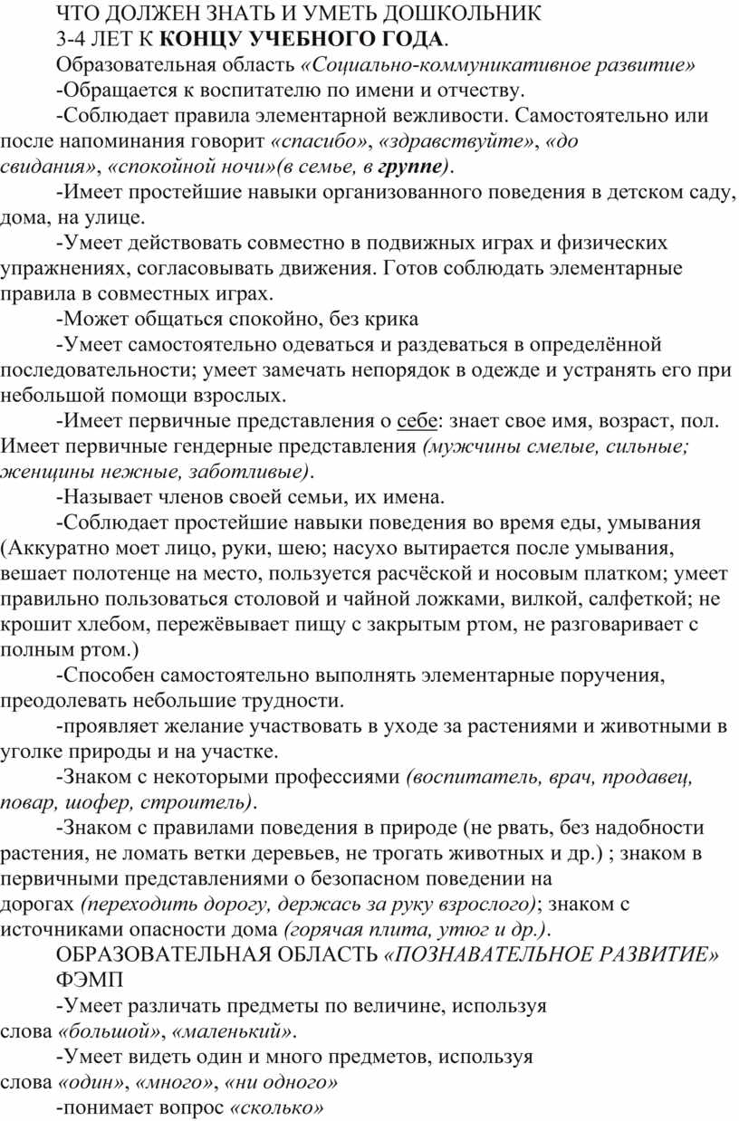 ЧТО ДОЛЖЕН ЗНАТЬ И УМЕТЬ ДОШКОЛЬНИК