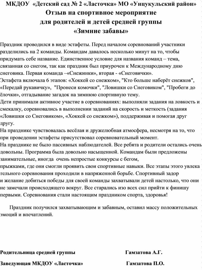 Отзыв на спортивное мероприятие