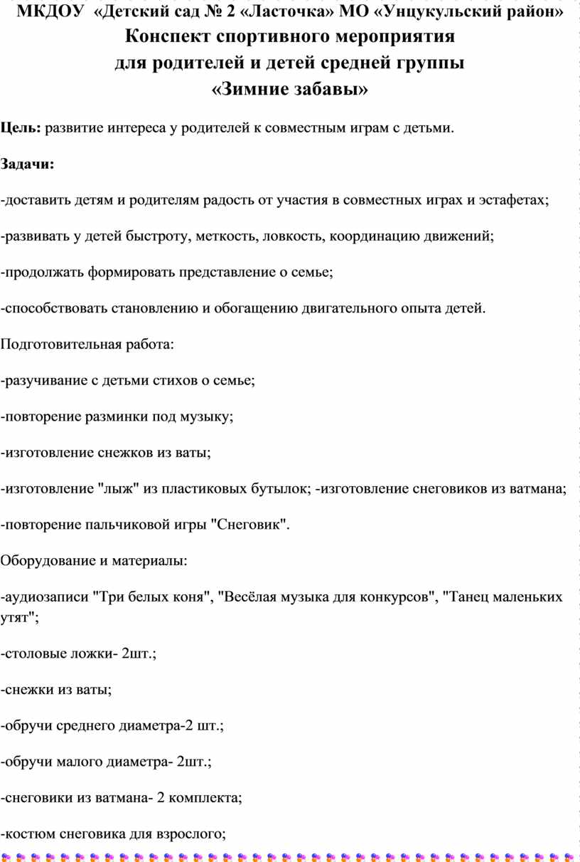 Конспект спортивного мероприятия