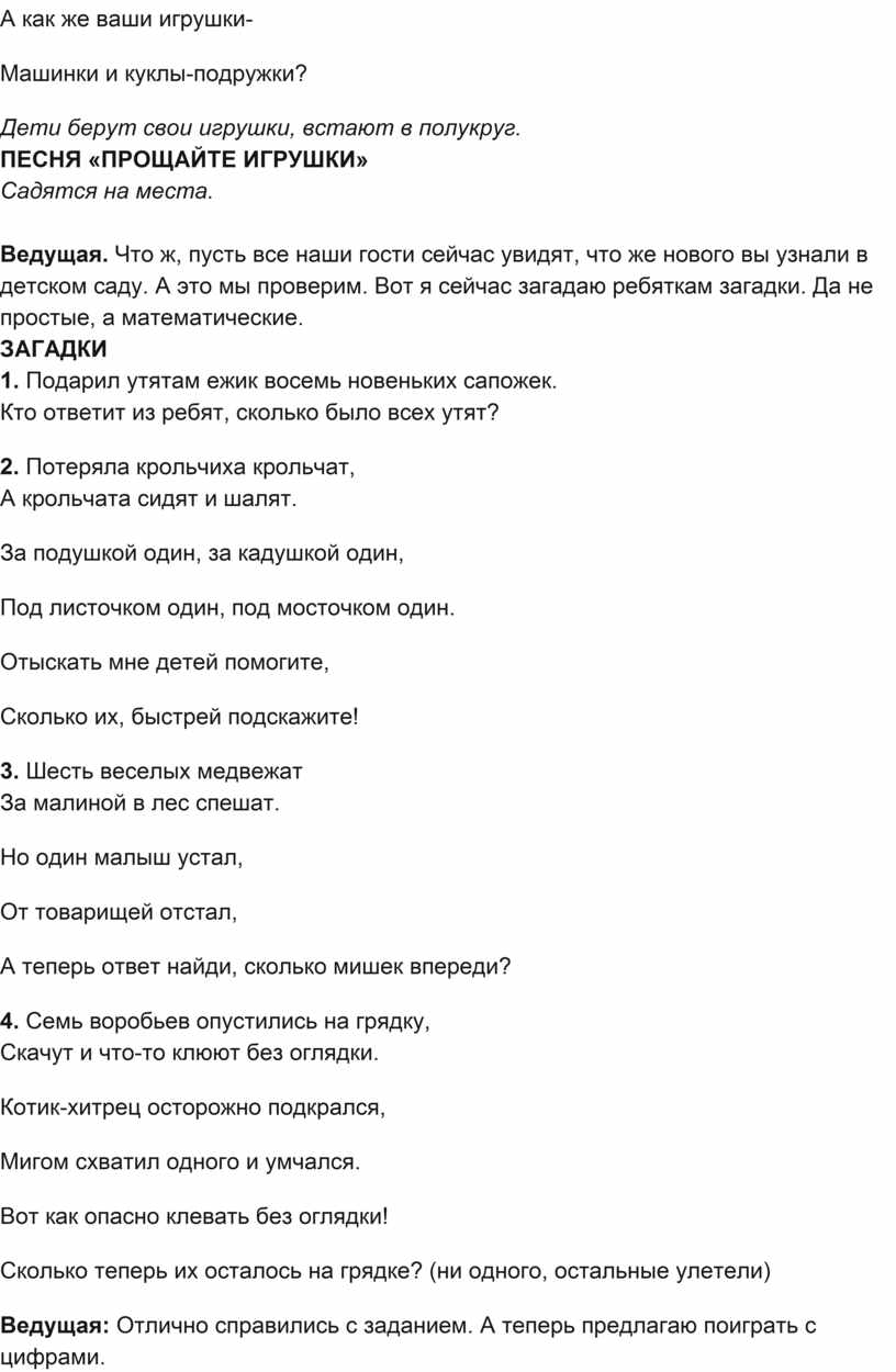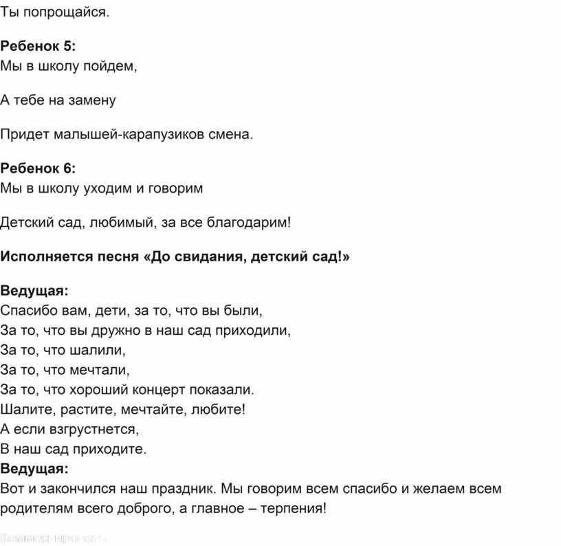 К сожалению, наш праздник подходит к концу, и пришла пора прощаться с детским садом. Наступила минута расставанья!