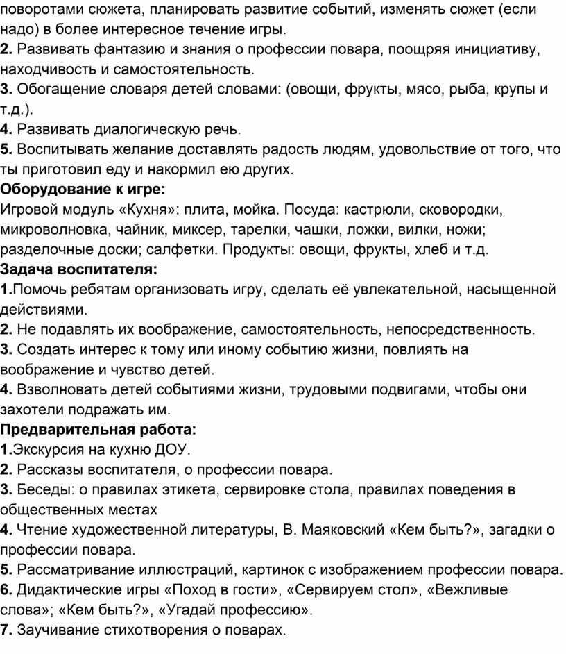 расширять границы сюжетно-ролевой игры «Повар» новыми поворотами сюжета,