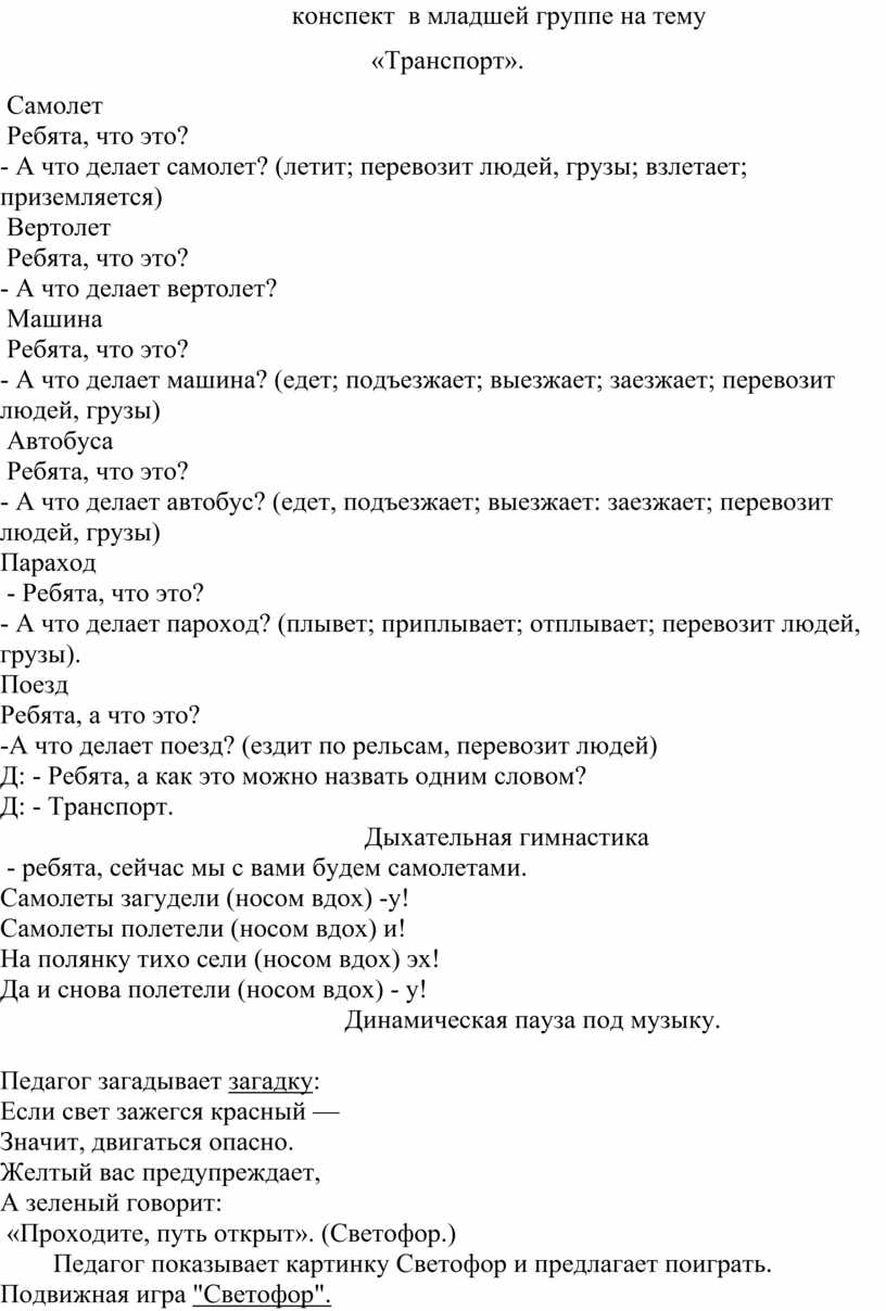 конспект в младшей группе на тему