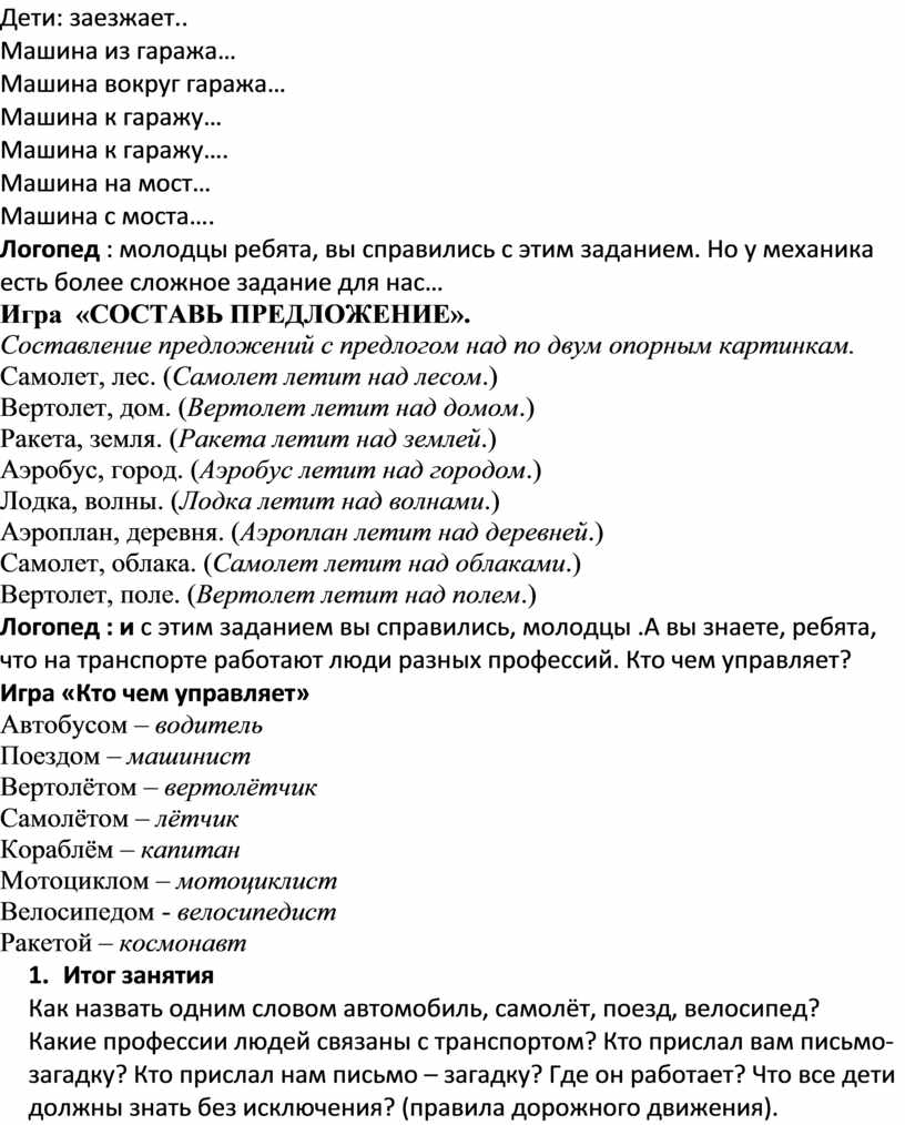 Логопед : и с этим заданием вы справились, молодцы .А вы знаете, ребята, что на транспорте работают люди разных профессий. Кто чем управляет?