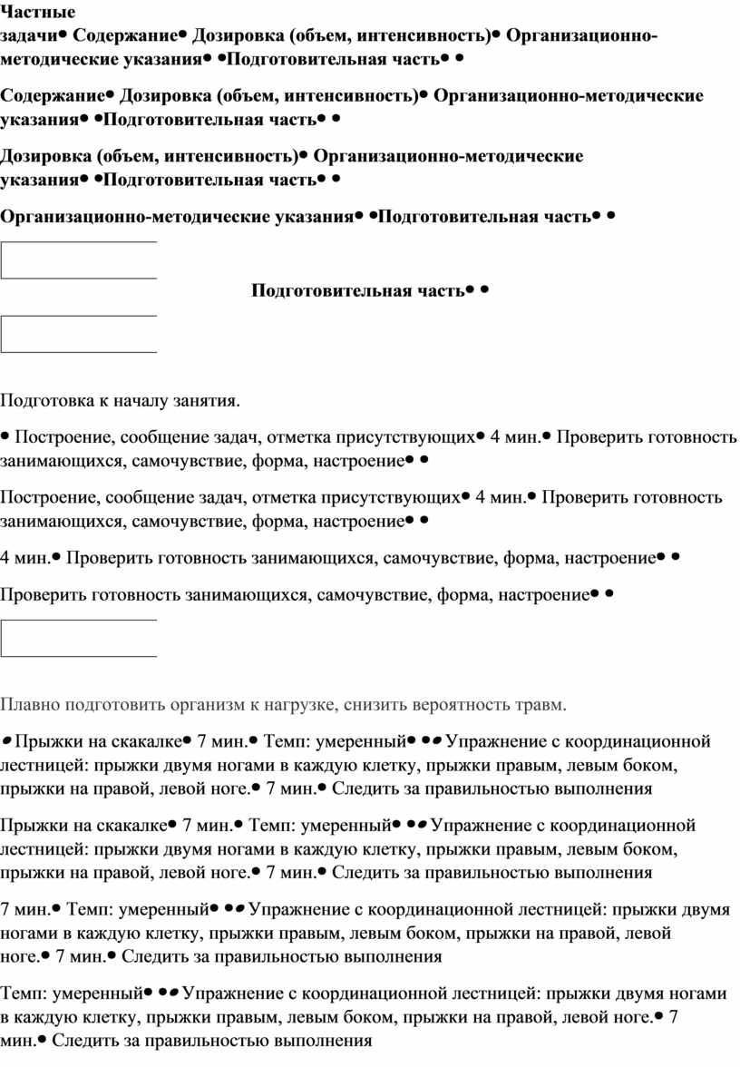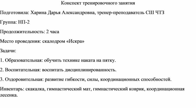 Конспект тренировочного занятия