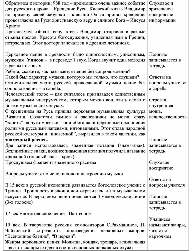 Цель: Познакомить учащихся с особенностями развития народной и духовной (церковной) музыки в Древней Руси