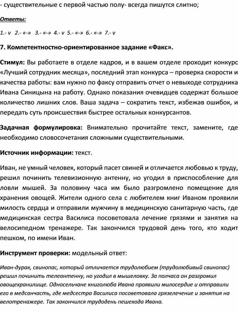 7. Компетентностно-ориентированное задание «Факс».