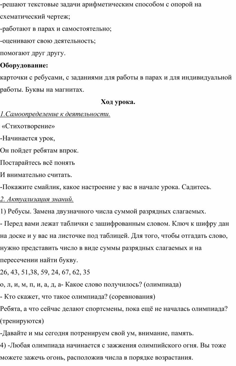 -решают текстовые задачи арифметическим способом с опорой на схематический чертеж;